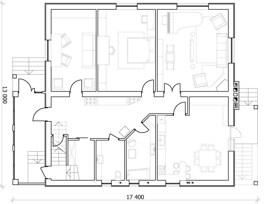 | Габариты дома: | 13,0 х 17,4 м | |||||||||||||||